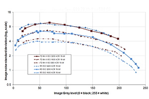 Results up to 2020 for noise vs grey level (after raw conversion)